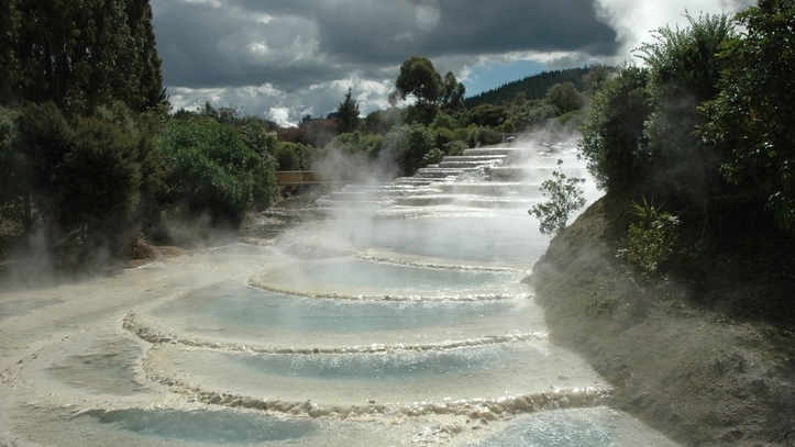 Silica-enriched water flows away from the geyser into blue pools then cascades over the terraces, depositing large amounts of silica to form amazing terraces reminiscent of the original pink and white versions of Tarawera which were once touted as the true eighth wonder of the world.